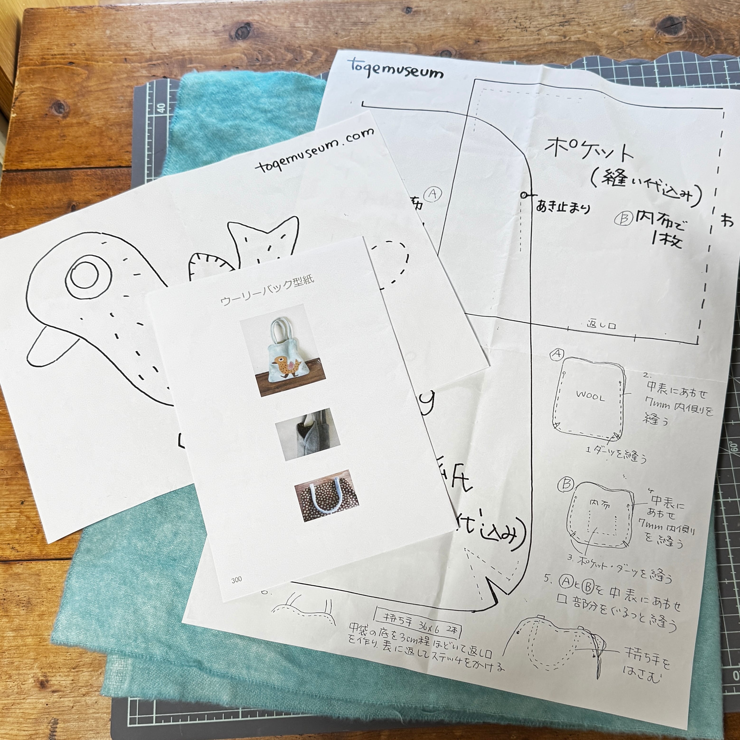 手染めウールを使ったバッグのレシピです。