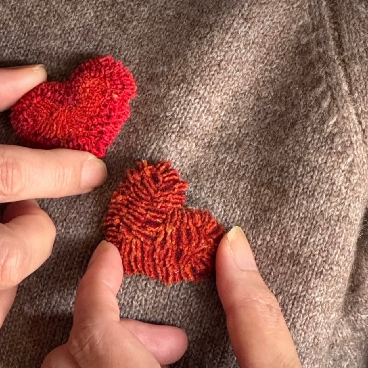 ③ハートのブローチ(赤・ゴールド・ピンクの3色)のキットセット(3つの技法を使います)
